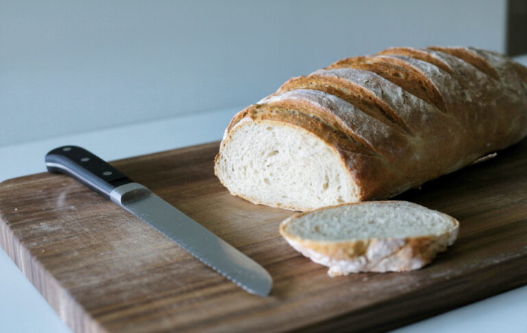 Once the loaf has finished proofing, use a sharp knife or razor blade to score the top. This allows the bread to expand predictably.