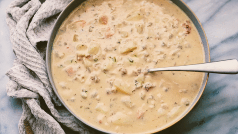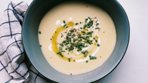 Add the grated cheddar and Gruyère to the soup in handfuls, stirring gently after each addition until it’s melted. Adding the cheese off-heat prevents it from seizing up and becoming grainy or oily.