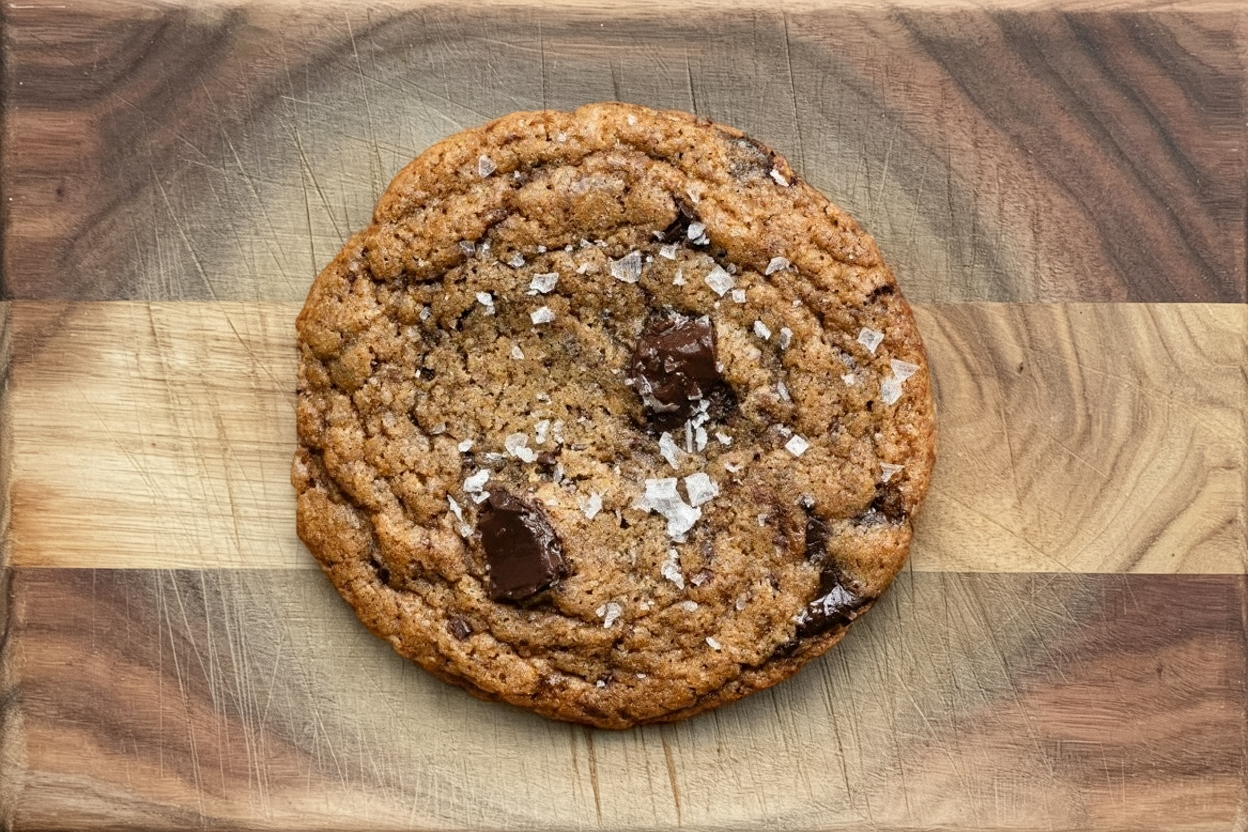Remove the pan from the oven and immediately sprinkle each cookie with flaky sea salt.