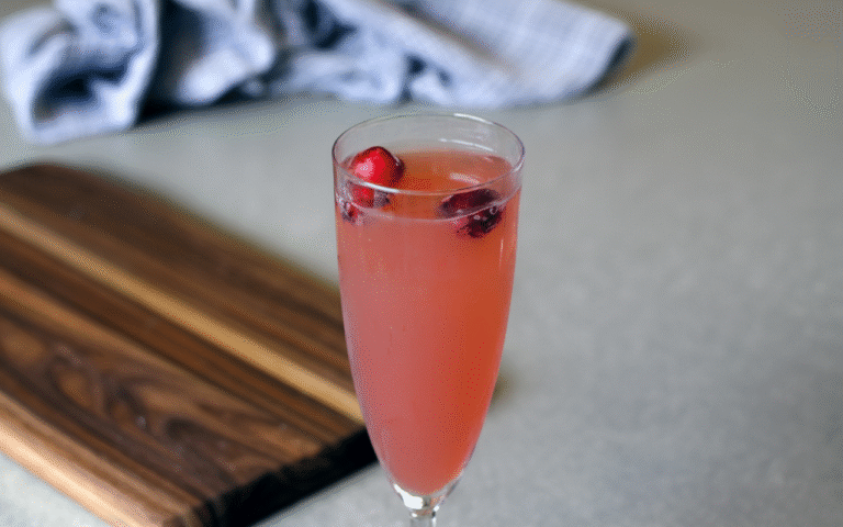 - In champagne flute, combine rosemary syrup, cranberry juice, orange liqueur, and orange juice.