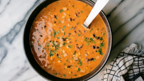 Can be made ahead and reheated. Soup will thicken as it stands.