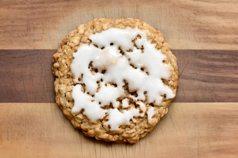 These are chewy oatmeal cookies made with lemon zest and finely chopped golden raisins, topped with a simple lemon icing.