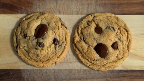 Melt the butter in a light-colored saucepan over medium heat. Continue to cook, swirling the pan frequently, until the milk solids at the bottom turn a deep brown and the butter smells nutty, ~5-8 minutes. Immediately pour it into a large mixing bowl, scraping out all the browned bits. Let it cool for about 10 minutes.