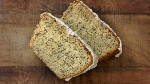 Let the cake cool in the pan on a wire rack for 10 minutes. While it cools, whisk together the confectioners’ sugar and orange juice for the glaze.