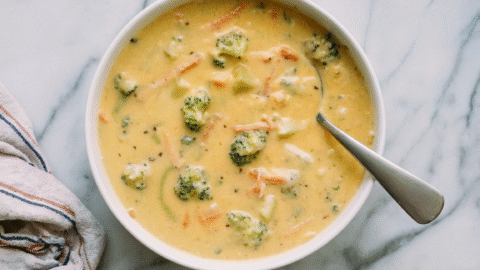 - Remove 1/3 of chickpeas, blend until smooth with a bit of broth.