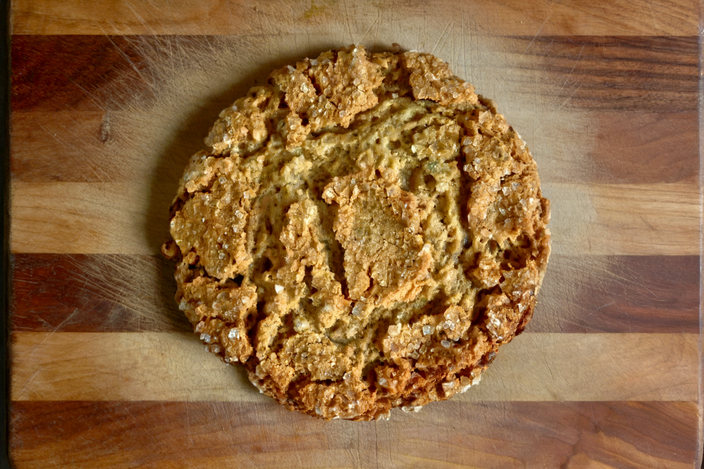 These are chewy peanut butter cookies that use white miso to add a savory depth and balance the sweetness. This version includes extra chopped peanuts for texture and is rolled in sugar for a crunchy exterior.