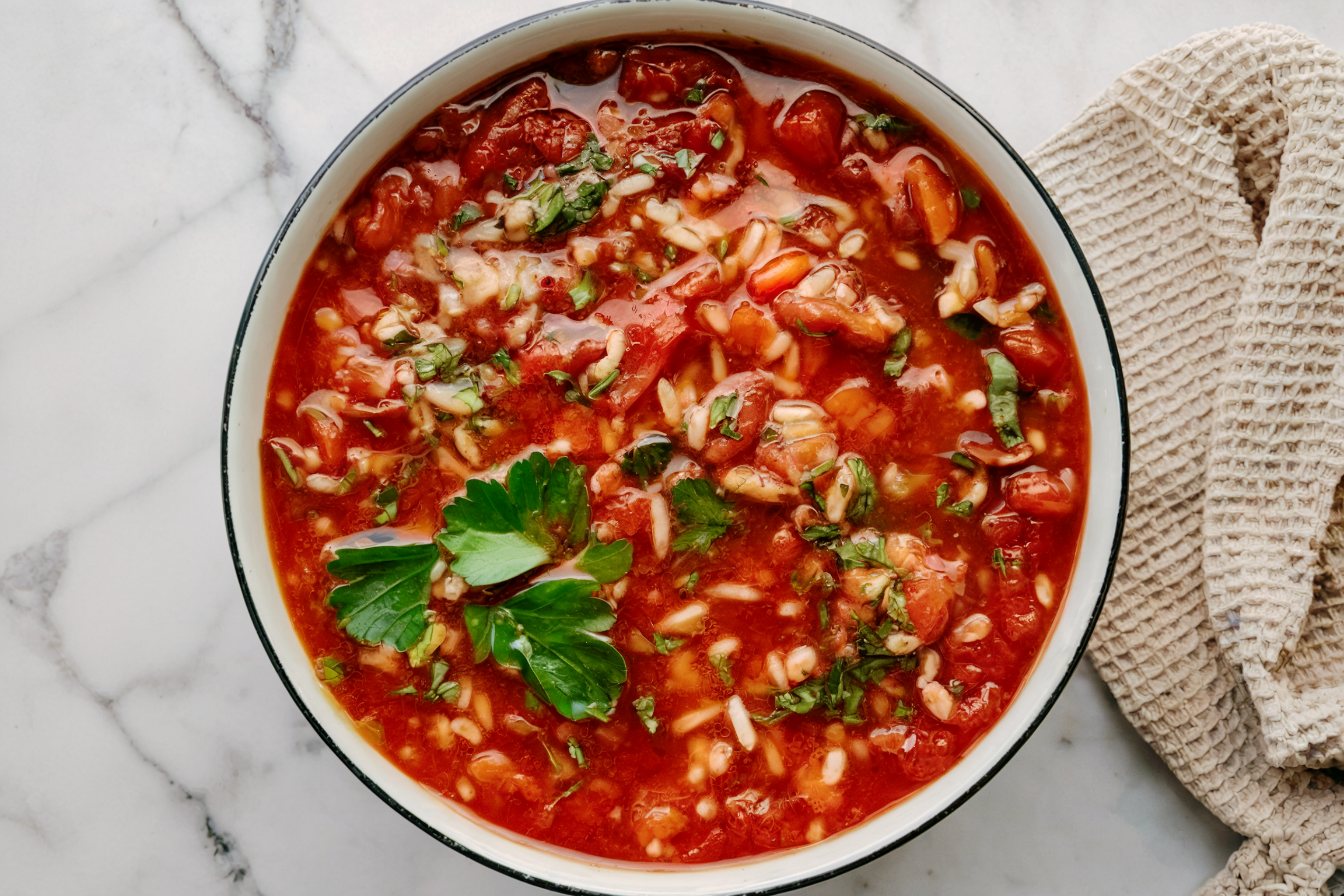 Taste the soup and adjust with salt and pepper as needed. Serve warm with rice stirred in or served on the side.