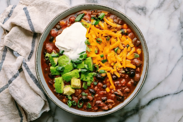 - Serve topped with tortilla chips, cheese, sour cream, and cilantro.