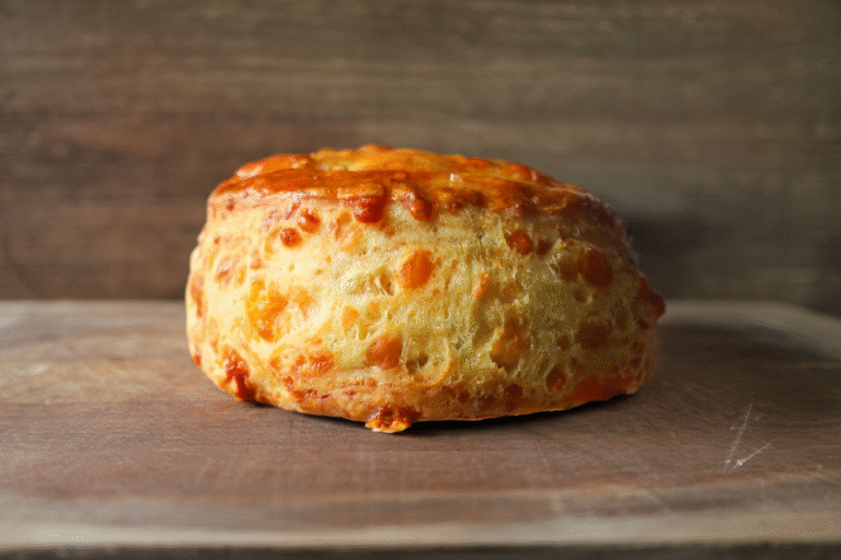 These are savory scones with a deep flavor from Parmesan, sharp cheddar, and Red Leicester, plus English mustard and Worcestershire sauce. They get a glossy, golden-brown top from a double egg wash.